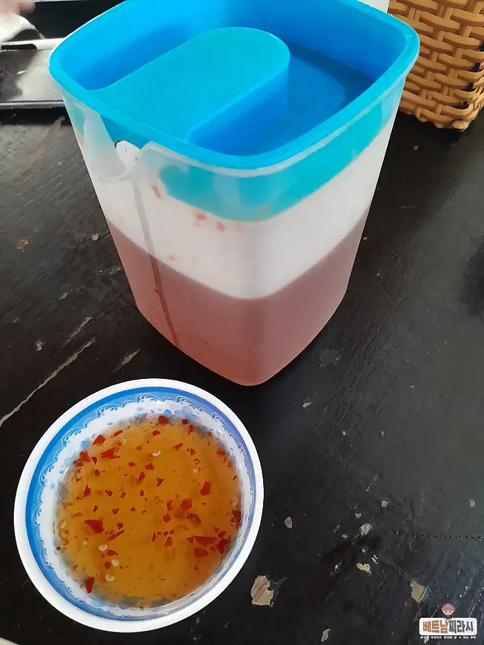 테이블에 있는 소스를~~ 종지에 부어서~~ 취향껏~